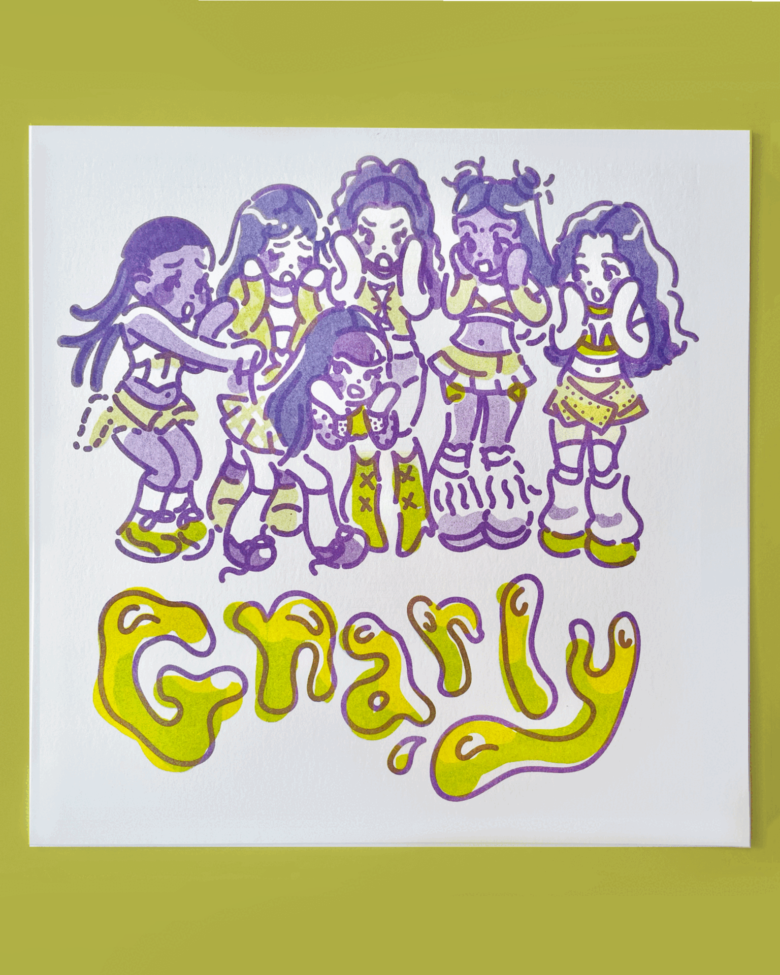 I create illustrations - both fan art from a variety of genres and original work of my own characters. I design a variety of merchandise and also utilize unique printmaking methods such as risograph and hand-pulled silk screen.